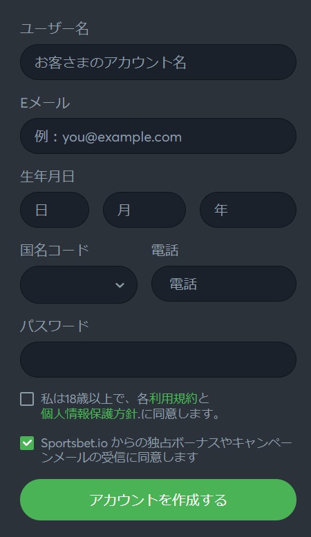 スポーツベットアイオーの登録方法は以下の方法で行ってください。